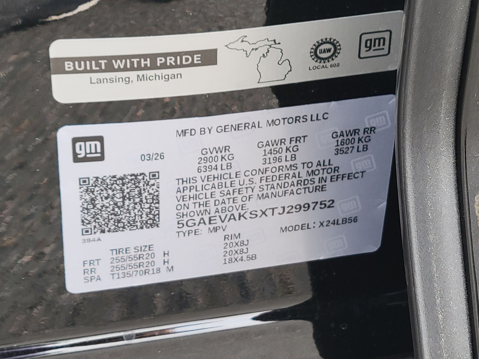 - Tires, P255/55R20 all-season blackwall