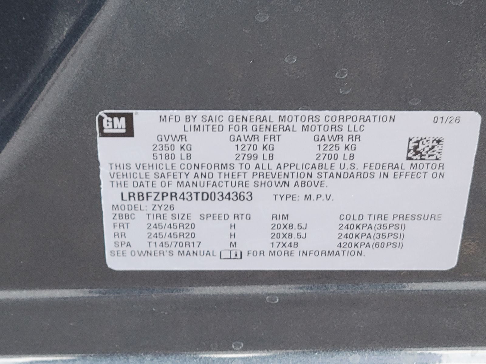 - GVWR, 5180 lbs (2350 kg)
