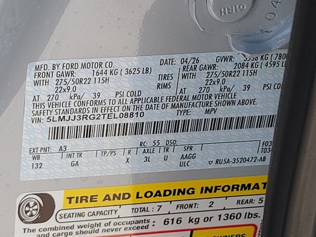 - Front Tire Size: P275/50HR22