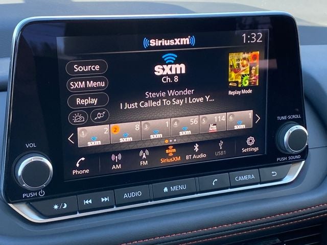 - Radio: AM/FM NissanConnect -inc: 6 speakers plus 2 tweeters, Apple CarPlay, Android Auto, 8" color touch screen display, Bluetooth®, 2 front USB type-C, Wi-Fi hotspot and NissanConnect Services powered by SiriusXM