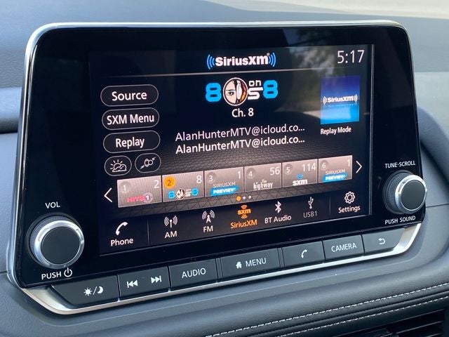 - Radio: AM/FM NissanConnect -inc: 4 speakers, SiriusXM radio, Apple CarPlay, Android Auto, 8" color touch screen display, Bluetooth® and 2 front USB type-C
