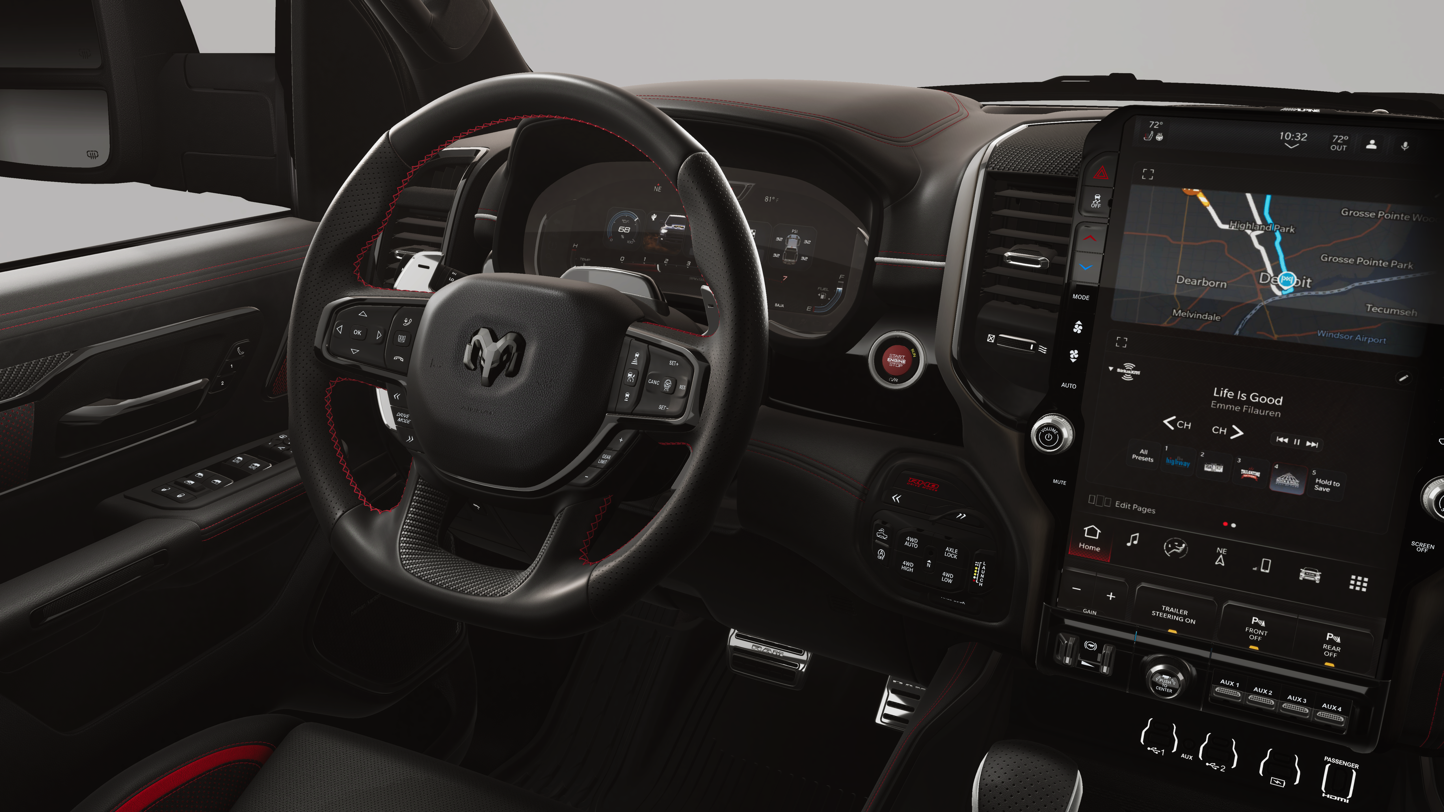 - 4-Wheel Disc Brakes w/4-Wheel ABS, Front And Rear Vented Discs, Brake Assist, Hill Descent Control, Hill Hold Control and Electric Parking Brake