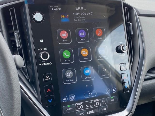 - Radio: Subaru 11.6" Multimedia Navigation System -inc: valet mode AM/FM stereo HD Radio multi-touch gesture high resolution display screen voice activated controls and navigation Bluetooth® audio streaming and hands-free phone connectivity Bluetooth® hands-free SMS text messaging connectivity TomTom navigation software w/what3words iPod control capability smartphone integration: wired and wireless Android Auto w/full screen view and wireless Apple CarPlay w/full screen view USB and Over The Air (OTA) audio system update TomTom navigation system update: USB/map Over-the-Air (OTA) (3 years free map updates) steering wheel audio system and Bluetooth® control switches harman kardon speaker system w/10 speakers (4 stacked dash panel side coaxial speakers 2 front door speakers and 4 stacked subwoofer rear door coaxial speakers) and 432 watt equivalent maximum output amplifier illuminated 3.5mm auxiliary input jack illuminated front USB A and C input/charge ports connected services operation indicator SOS emergency assistance: red SOS button and enhanced roadside assistance: blue i-button