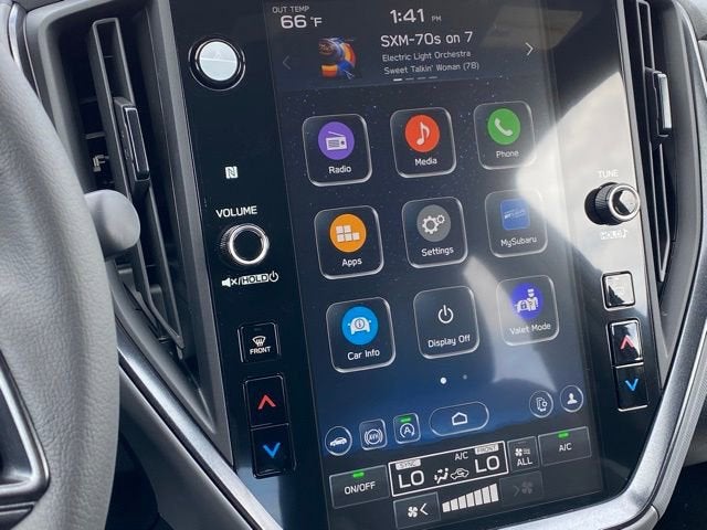 - Radio: Subaru 11.6" Multimedia Plus System -inc: AM/FM stereo HD Radio multi-touch gesture high resolution display screen voice activated controls Bluetooth® audio streaming and hands-free phone connectivity Bluetooth® hands-free SMS text messaging connectivity iPod control capability smartphone integration: wired and wireless Android Auto w/full screen view and wireless Apple CarPlay w/full screen view USB and Over The Air (OTA) audio system update steering wheel audio system and Bluetooth® control switches 6 speakers (2 dash panel tweeter 2 front door and 2 rear door) illuminated 3.5mm auxiliary input jack illuminated front USB A and C input/charge ports connected services operation indicator SOS emergency assistance: red SOS button and enhanced roadside assistance: blue i-button