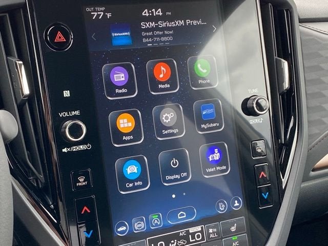 - Radio: Subaru 11.6" Multimedia Plus System -inc: valet mode integrated center information display AM/FM stereo HD Radio multi-touch gesture high resolution display screen voice activated controls Bluetooth® audio streaming and hands-free phone connectivity w/SMS text messaging (refer to Subaru.com for cellphone compatibility) iPod control capability smartphone integration: Android Auto and Apple CarPlay w/full screen view and wireless connection SiriusXM satellite radio w/360L (free 4-month trial subscription included) USB and Over The Air (OTA) audio system update steering wheel controls 6 speakers 3.5mm auxiliary input jack and roof mounted audio and satellite antenna