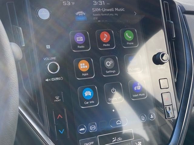 - Radio: Subaru 11.6" Multimedia Plus System -inc: valet mode AM/FM stereo HD Radio multi-touch gesture high resolution display screen voice activated controls Bluetooth® audio streaming and hands-free phone connectivity Bluetooth® hands-free SMS text messaging connectivity iPod control capability smartphone integration: wired and wireless Android Auto w/full screen view wireless Apple CarPlay w/full screen view and wireless connection USB and Over The Air (OTA) audio system update audio system and Bluetooth® steering wheel control switches 6 speakers (2 dash panel tweeter 2 front door 2 rear door) illuminated 3.5mm auxiliary input jack illuminated USB A and C input charge ports roof mounted satellite and connected services roof mounted black antenna connected services operation indicator SOS emergency assistance (red button) and ehanced roadside assistance (blue i-button)