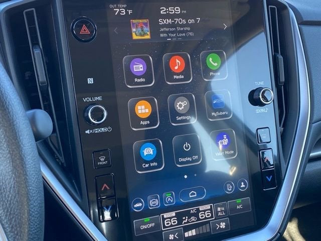 - Radio: Subaru 11.6" Multimedia Plus System -inc: valet mode AM/FM stereo HD Radio multi-touch gesture high resolution display screen voice activated controls Bluetooth® audio streaming and hands-free phone connectivity Bluetooth® hands-free SMS text messaging connectivity iPod control capability smartphone integration: wired and wireless Android Auto w/full screen view wireless Apple CarPlay w/full screen view and wireless connection USB and Over The Air (OTA) audio system update audio system and Bluetooth® steering wheel control switches 6 speakers (2 dash panel tweeter 2 front door 2 rear door) illuminated 3.5mm auxiliary input jack illuminated USB A and C input charge ports roof mounted satellite and connected services roof mounted black antenna connected services operation indicator SOS emergency assistance (red button) and ehanced roadside assistance (blue i-button)