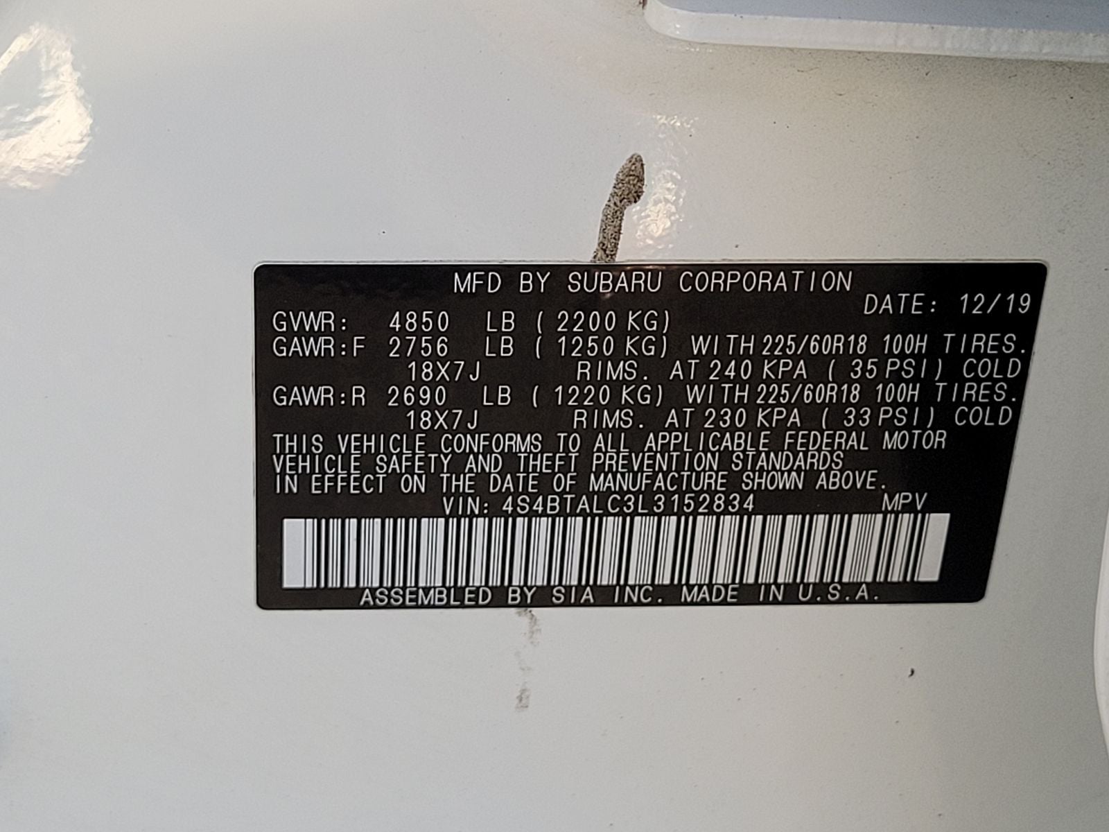 VIN: 4S4BTALC3L3152834